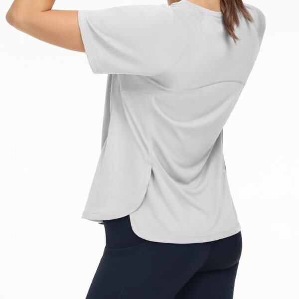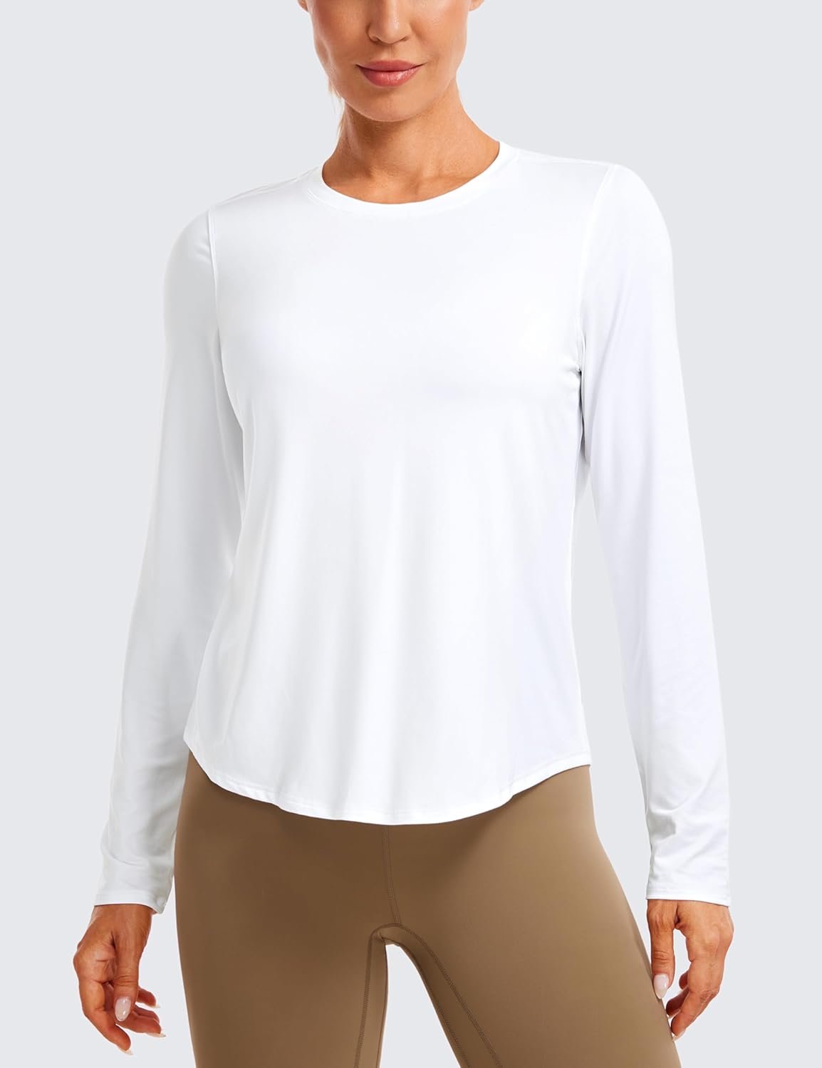 - Crew neck and long curved hem for more coverage and full range of movement